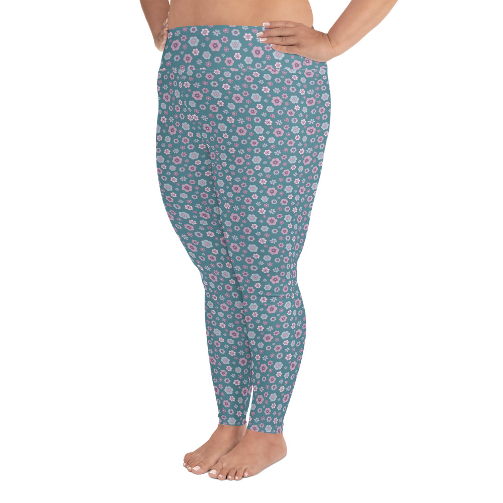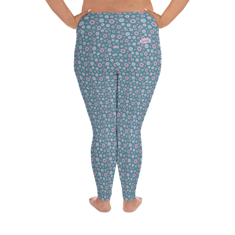 SIPPA långa turkos leggings med lila blommor (2XL-6XL)