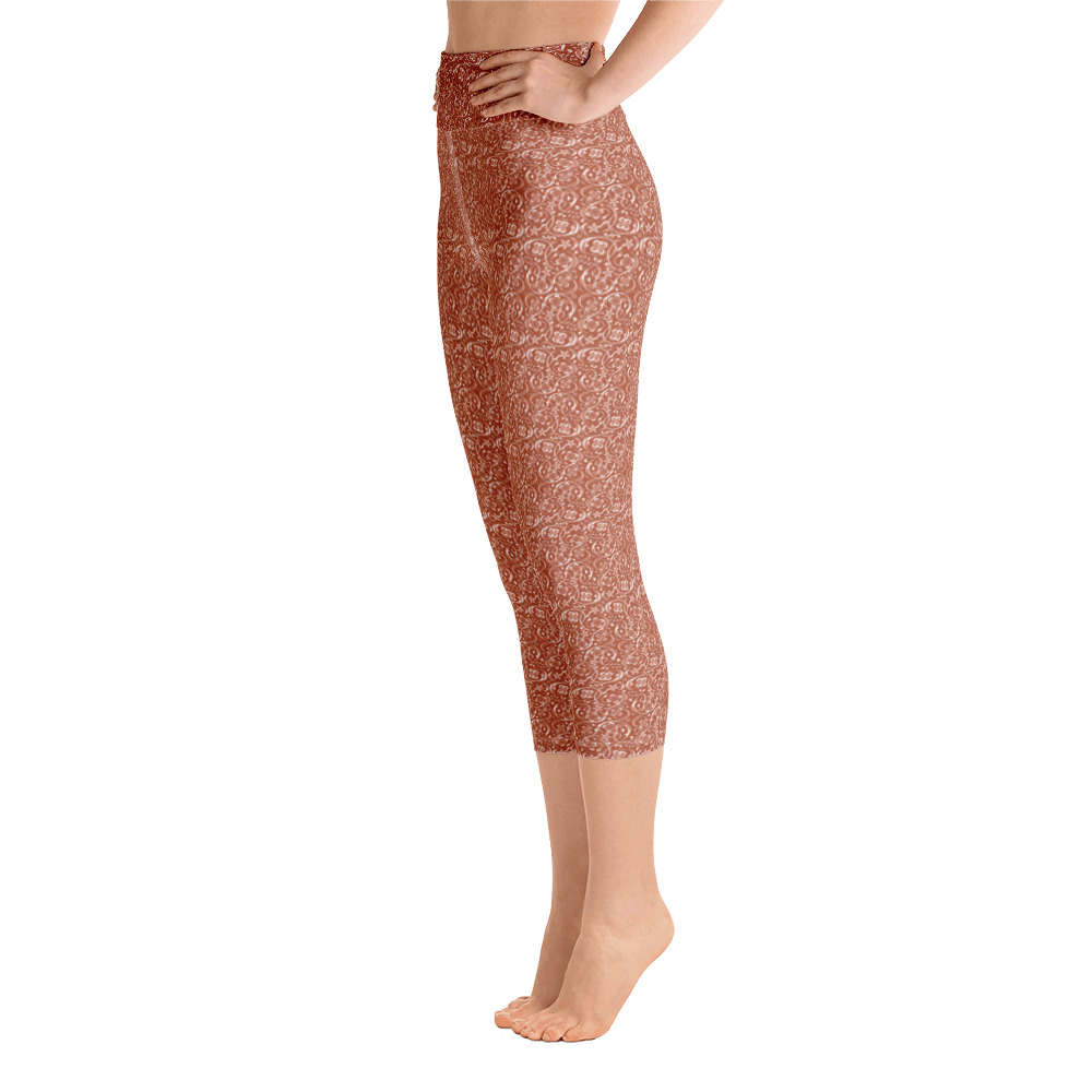 Sköna caprileggings med slingrande blommönster i tegelrött. Tillverkade i mjuk och bekväm fyrvägsstretch i mikrofiber (polyester/spandex). Med liten nyckelficka på insidan av linningen.